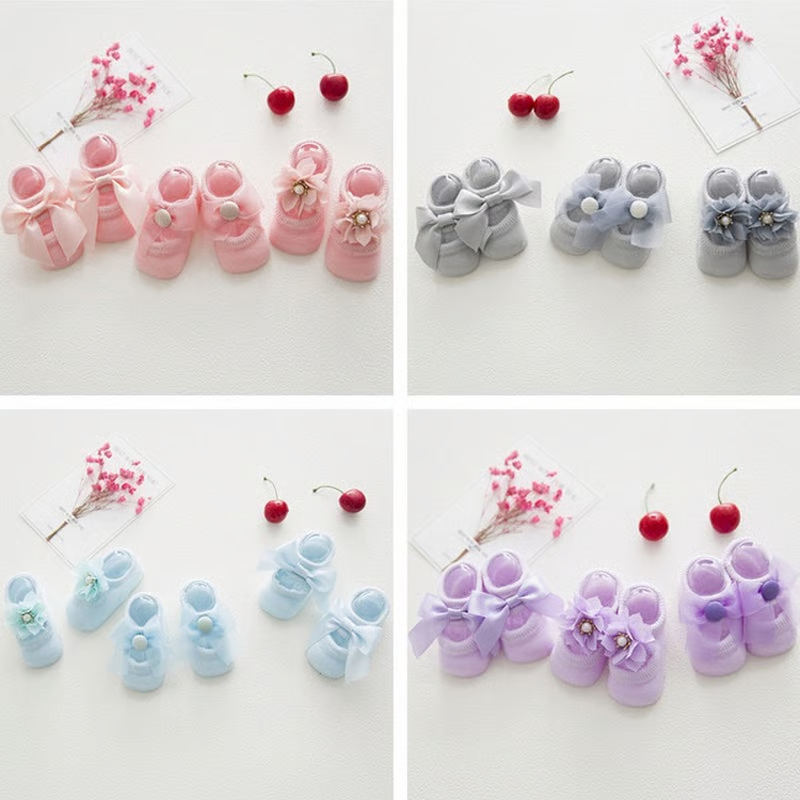 IMĂDNI VALĂ DIZĂJN - BĂĄjos masnikkal Ă©s virĂĄgokkal dĂszĂtett zoknik, amelyek kedves balettcipĆket idĂ©znek, Ă©s vidĂĄm, stĂlusos kiegĂ©szĂtĆkĂ©nt szolgĂĄlnak a baba mindennapi ruhĂĄihoz.
