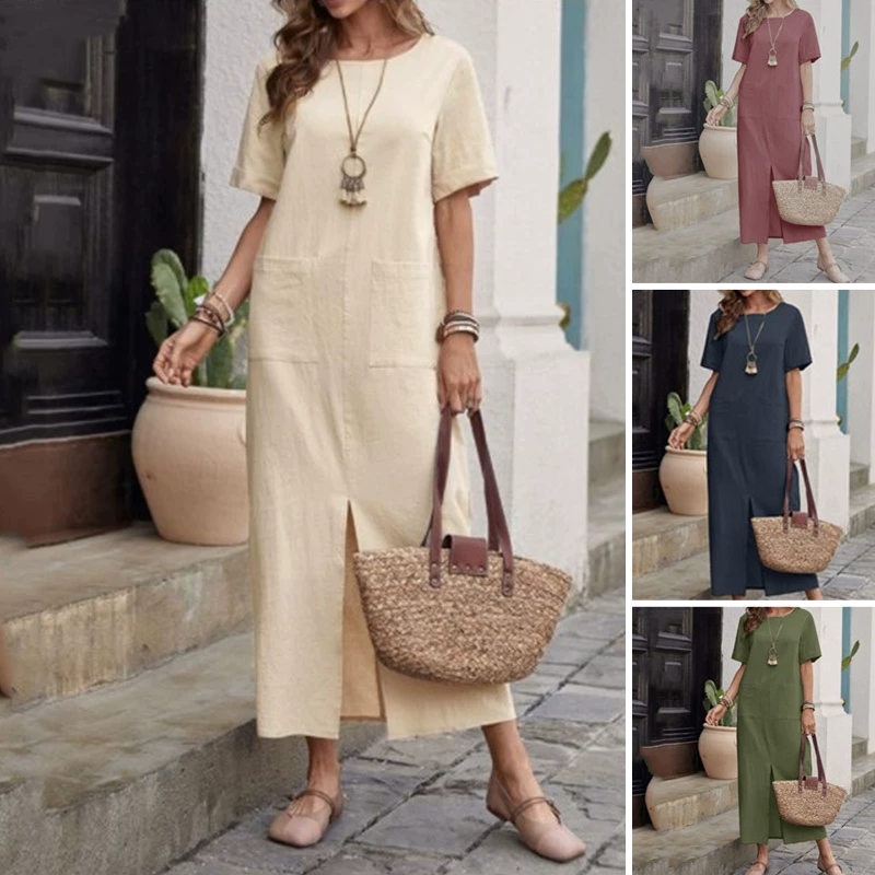 A csomag tartalmazza:Â 1ĂPamut-vĂĄszon laza kerek nyakĂș ruha