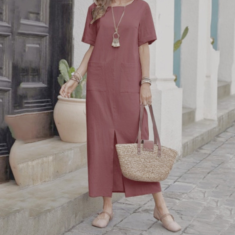 LĂLEGZĆ ELEGĂNS â Lebegj ĂĄt a napodon ebben a lĂ©gies pamut-vĂĄszon maxiban, amely a laza hangulatot Ă©s a kifinomult stĂlust ötvözi. A laza sziluett kecsesen simul a görbĂ©khez, mĂg az oldalsĂł hasĂtĂ©k egy csipetnyi mozgĂĄst Ă©s eleganciĂĄt kölcsönöz.