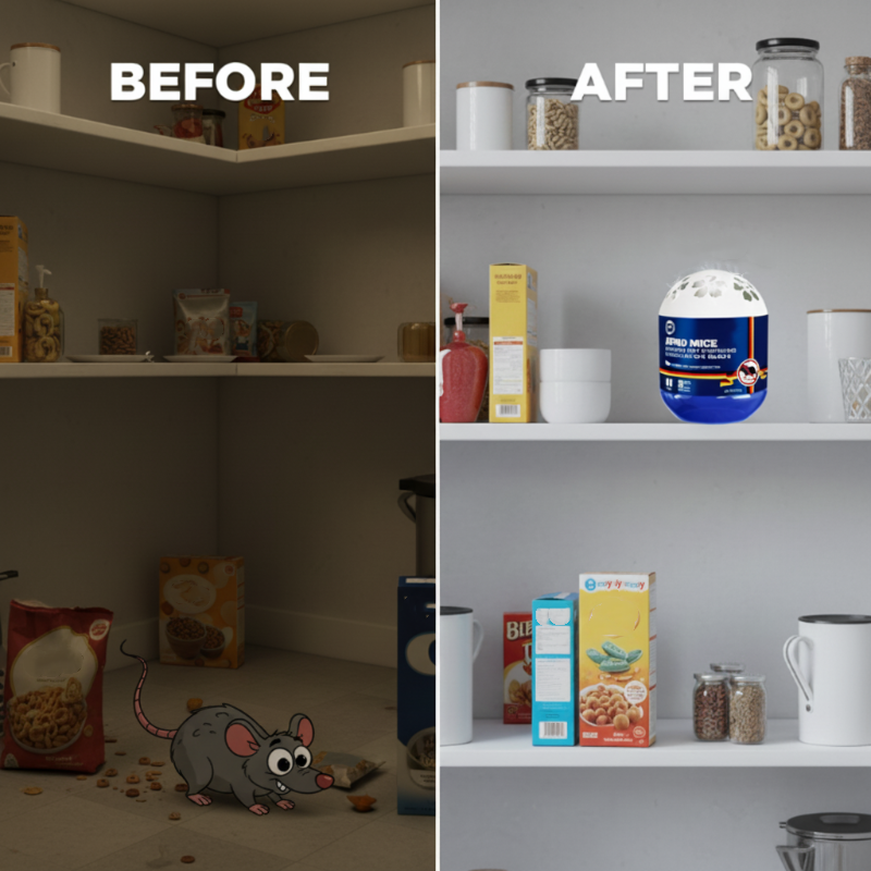 Ideális konyhákba, tárolóhelyiségekbe, erkélyekre, garázsokba és akár járművek motorterébe is. Egyszerűen nyissa ki a tasakot, és helyezze el a kívánt helyen a folyamatos riasztó hatás elérése érdekében. Nincs szükség gyakori cserére – könnyű és problémamentes.