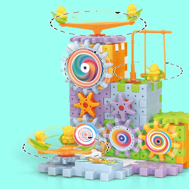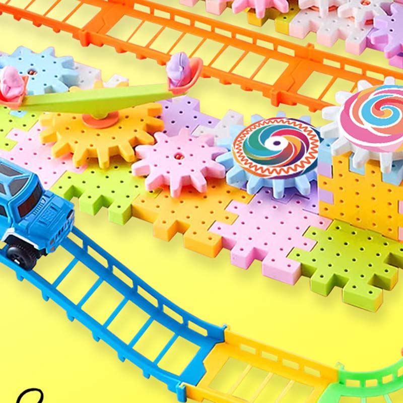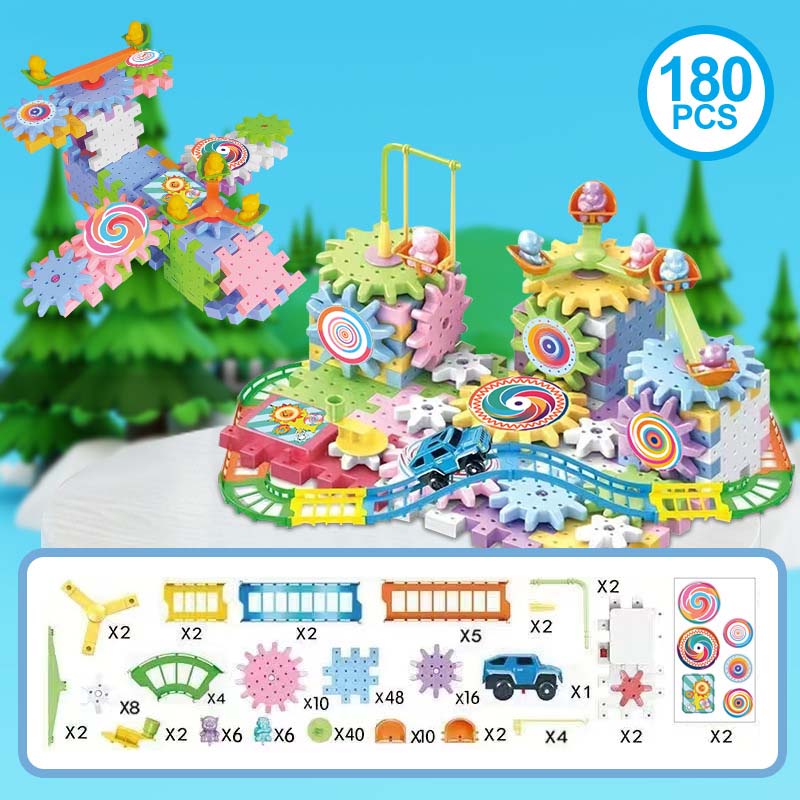 VÉGTELEN KREATIVITÁS - Több, mint egyszerű építkezés. Ez a dinamikus készlet lehetővé teszi a gyerekeknek, hogy fogaskerekekkel és sínekkel összetett, mozgó szerkezeteket építsenek, kihívást jelentve képzelőerejüknek, hogy mindenfélét alkossanak, a körhintától az egész vidámparkig.