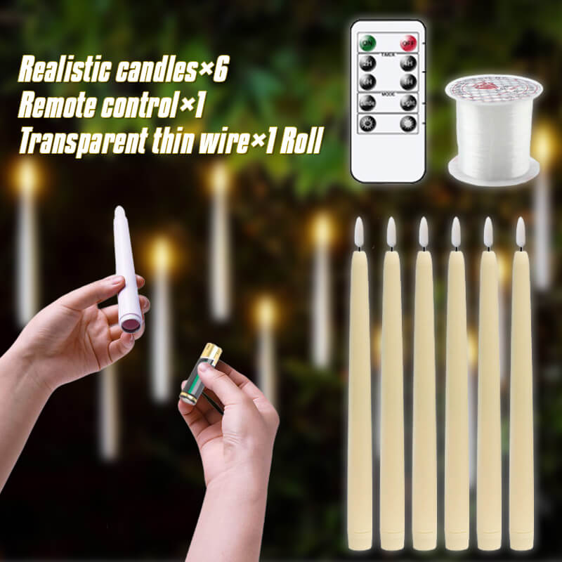 Dekoratív, lángmentes gyertyák távirányítóval (elemek nem tartoznak a csomaghoz) Világítás × 6 Távirányító × 1 Átlátszó vezeték × 1 |