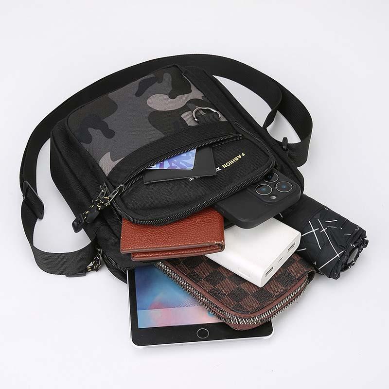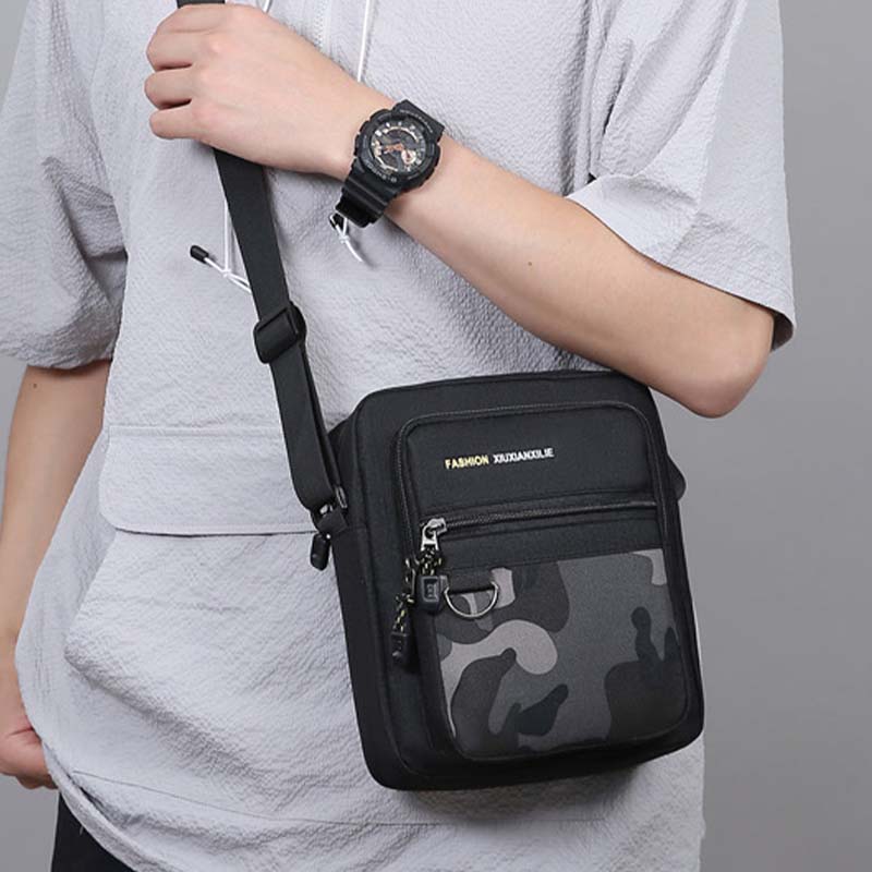 MODERN CASUAL STÍLUS: Elegáns sziluettjével és modern kamuflázs mintájával ez a táska könnyedén kiegészíti az alkalmi ruházatot. Stílusos és praktikus kiegészítő minden férfi számára, aki értékeli a funkcionalitást és a divatot egyaránt.