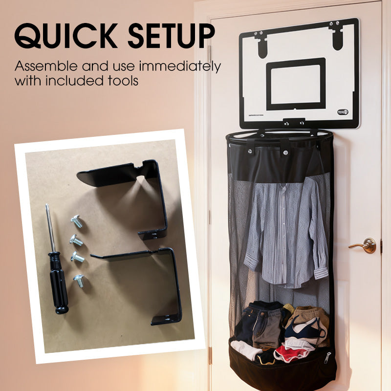 TÖBBFÉLE TELEPÍTÉSI LEHETŐSÉG: A csomagban ragasztós kampók és erős ötvözetből készült kampók is találhatók, így sokoldalúan felszerelhető. A felhasználók egyszerűen, bonyolult szerszámok nélkül felakaszthatják a szennyeskosarat különböző ajtókra vagy falfelületekre.