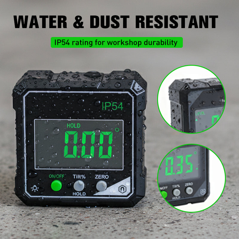 FOKOZOTT KĂRNYEZETVĂDELEM: IP54 vĂz- Ă©s porĂĄllĂłsĂĄgi besorolĂĄssal rendelkezĆ szögmĂ©rĆ, amely mƱhelyi szennyezĆdĂ©sek Ă©s enyhe nedvessĂ©g ellen is ellenĂĄllĂł, Ăgy ideĂĄlis beltĂ©ri hasznĂĄlatra vagy nehĂ©z kĂŒltĂ©ri körĂŒlmĂ©nyek között.