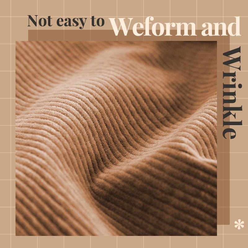 A kiváló minőségű kordbársony anyag puha és sima, bőrbarát. Bizonyos fokú rugalmassággal rendelkezik, és nem könnyű deformálódni és gyűrődni.
