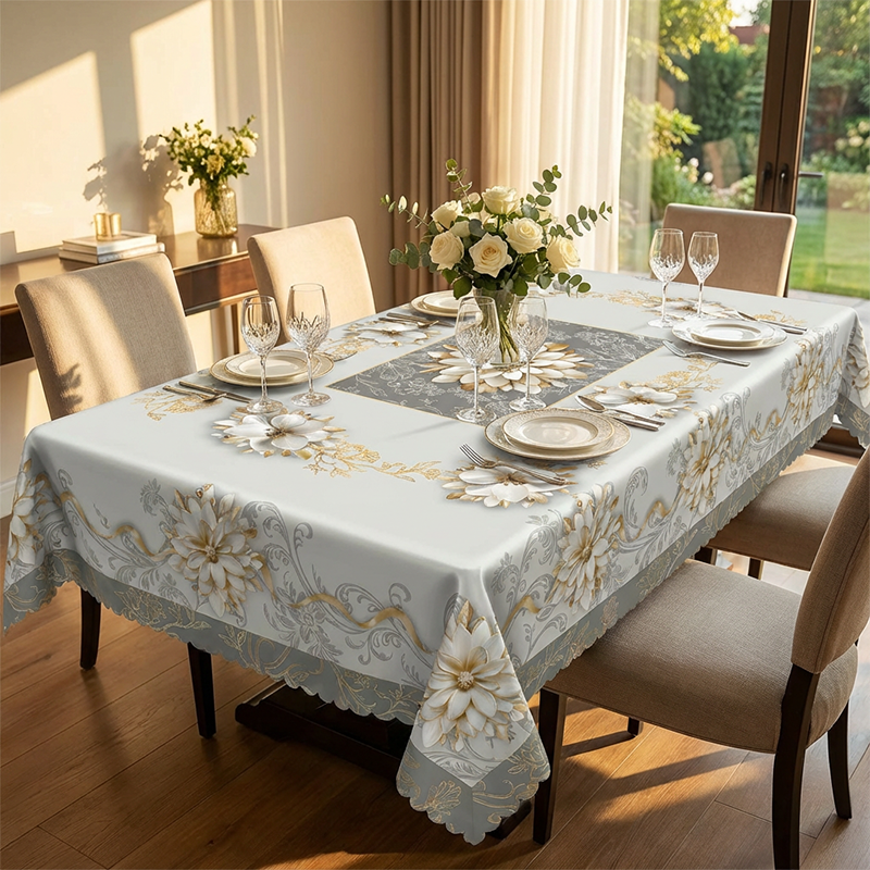 ELEGĂNS EMBOZOTT MINTA â Kifinomult virĂĄgminta jellemzi, amelynek finom domborĂș textĂșrĂĄja azonnal felemeli Ă©tkezĆszobĂĄja dekorĂĄciĂłjĂĄt. Ez az idĆtlen design eleganciĂĄt Ă©s finomsĂĄgot kölcsönöz bĂĄrmely Ă©tkezĂ©snek vagy összejövetelnek.