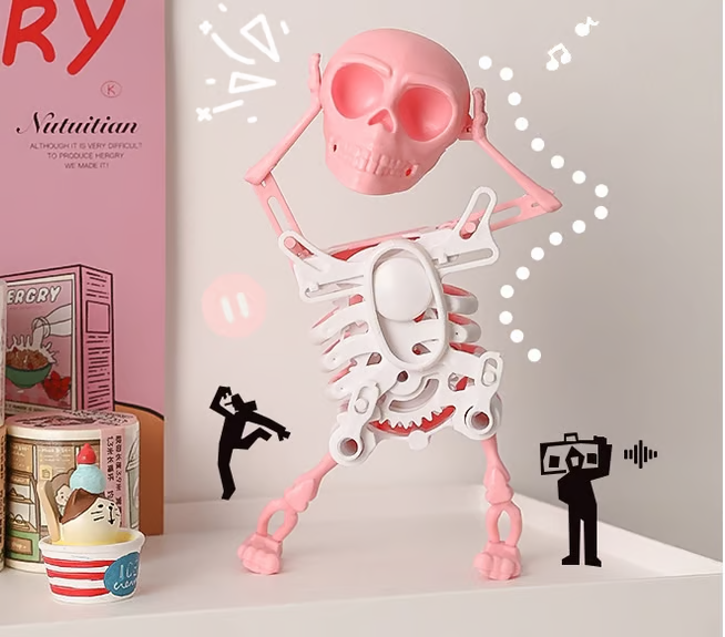 A csomag tartalma: 1* 3D nyomtatott táncoló csontváz játék.