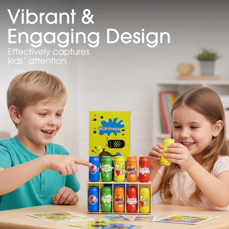 ÉLÉNK ÉS LEBILINCSELLŐ MEGJELENÉS: Színes, miniatűr italdobozokkal rendelkezik, amelyek vizuálisan vonzóak a gyermekek számára. A élénk színek és szórakoztató minták hatékonyan felkeltik a figyelmüket, tanulási folyamatot élvezetessé téve és a koncentrációt segítve.