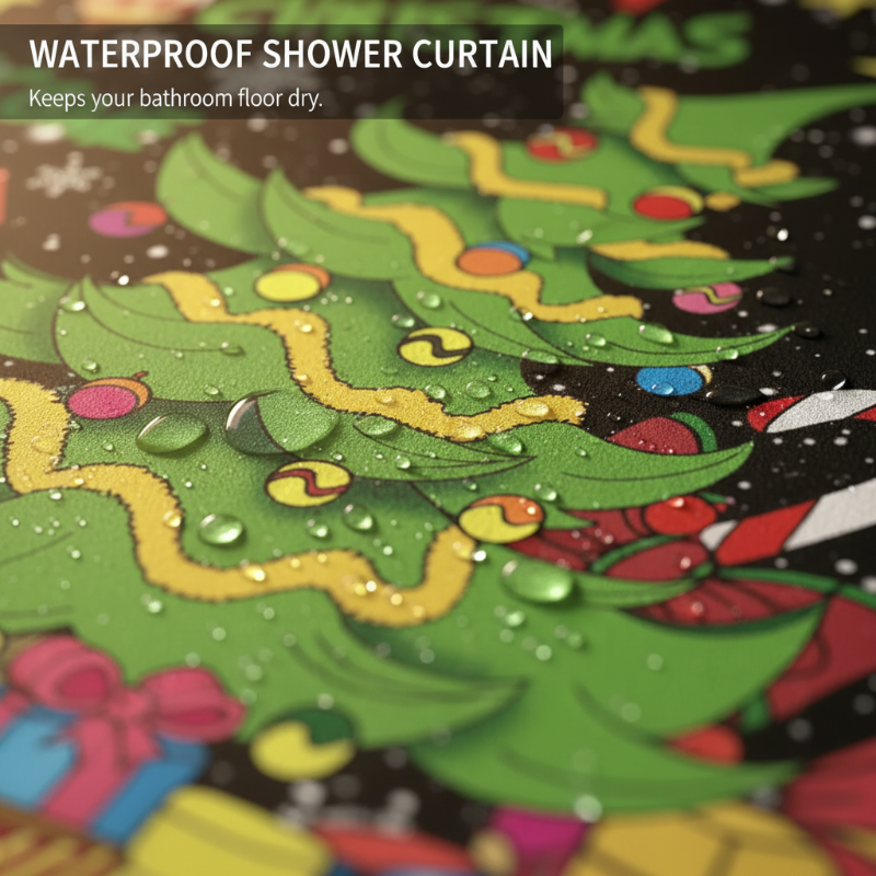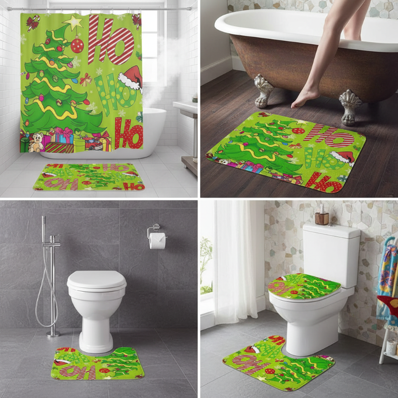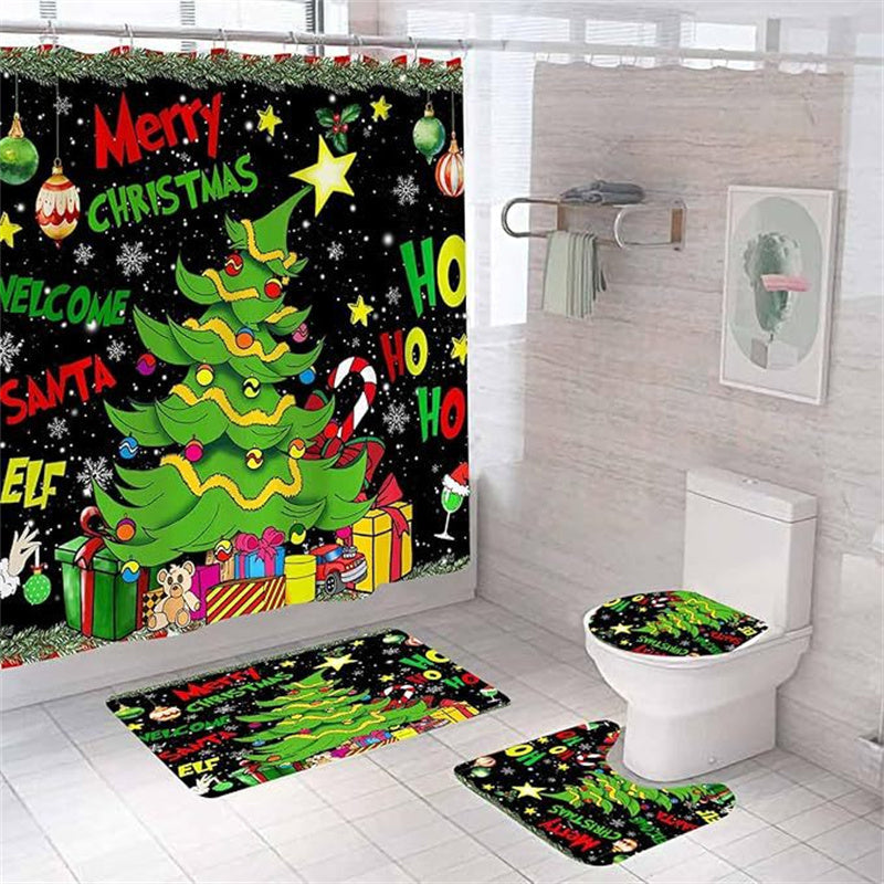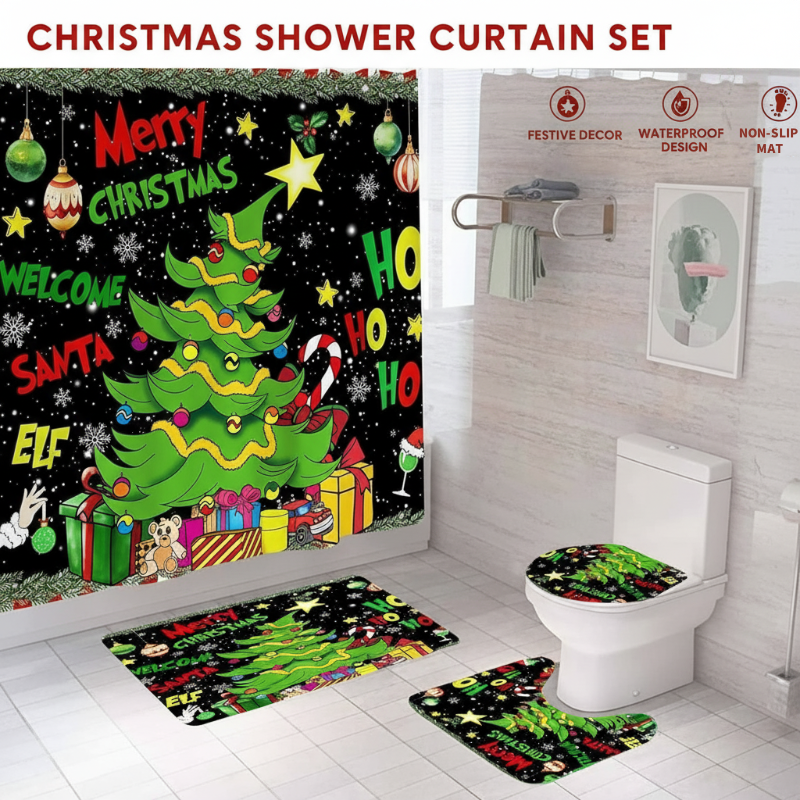 4 darabos vízálló karácsonyi zuhanyfüggöny szett