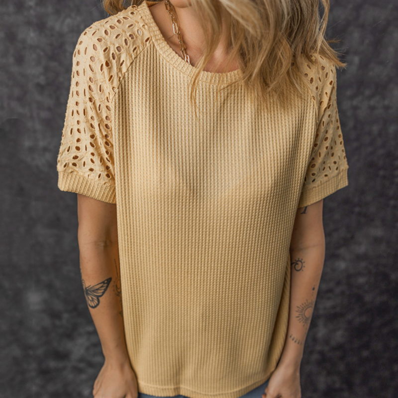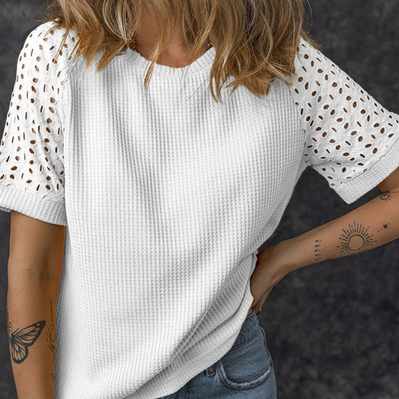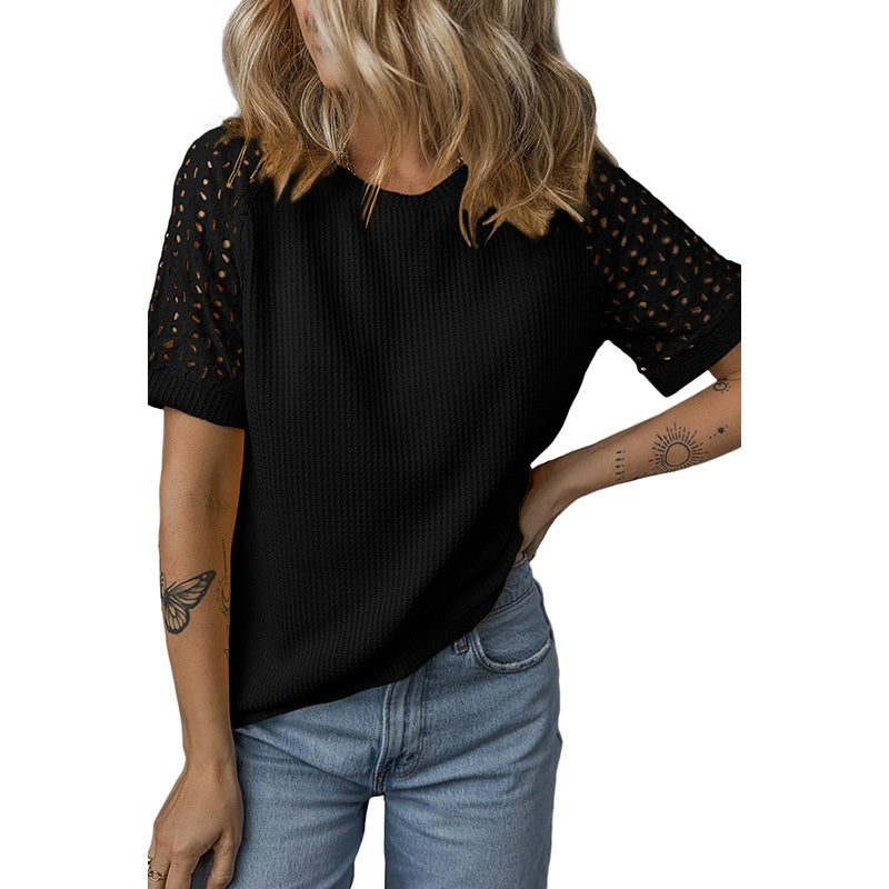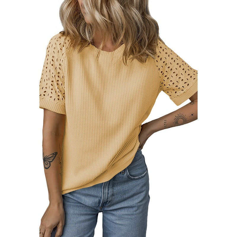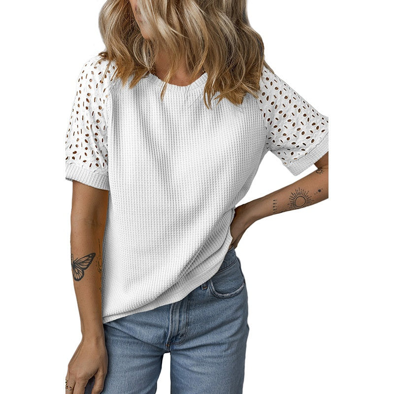💖✨[S-2XL]👚 Női alkalmi rövid ujjú laza üreges ki rövid ujjú